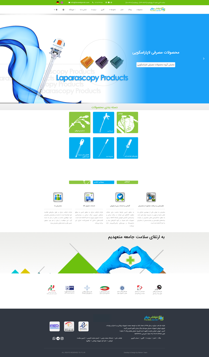 رهام با ارائه خدمات طراحی سایت تجهیزات پزشکی، حضور آنلاین تیم فراطب جراح را به سطحی جدید ارتقا داد. این مجموعه، یکی از پیشگامان واردات، توزیع و فروش اقلام مصرفی پزشکی در ایران است. ما با طراحی پلتفرمی مدرن و کاربردی، علاوه بر نمایش حرفهای خدمات و محصولات این شرکت، امکان دسترسی بهتر به مشتریان و تسهیل ارتباطات را فراهم کردیم. همچنین با اجرای طراحی سایت بهینه و هدفمند، جایگاه فراطب جراح را بهبود بخشیدیم تا این برند بتواند در رقابت بازار تجهیزات پزشکی بدرخشد و خدمات خود را به شکلی گستردهتر ارائه دهد.